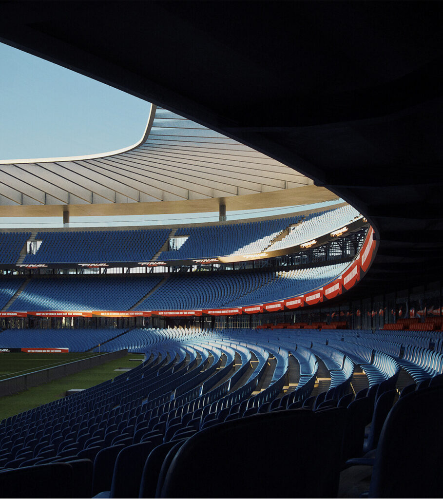 The project draws inspiration from Lyon’s industrial heritage and riverfront geometry. Structural arches reinterpret historic warehouse forms, while the material palette — limestone, brushed steel, and timber — establishes a dialogue between permanence and modernity.